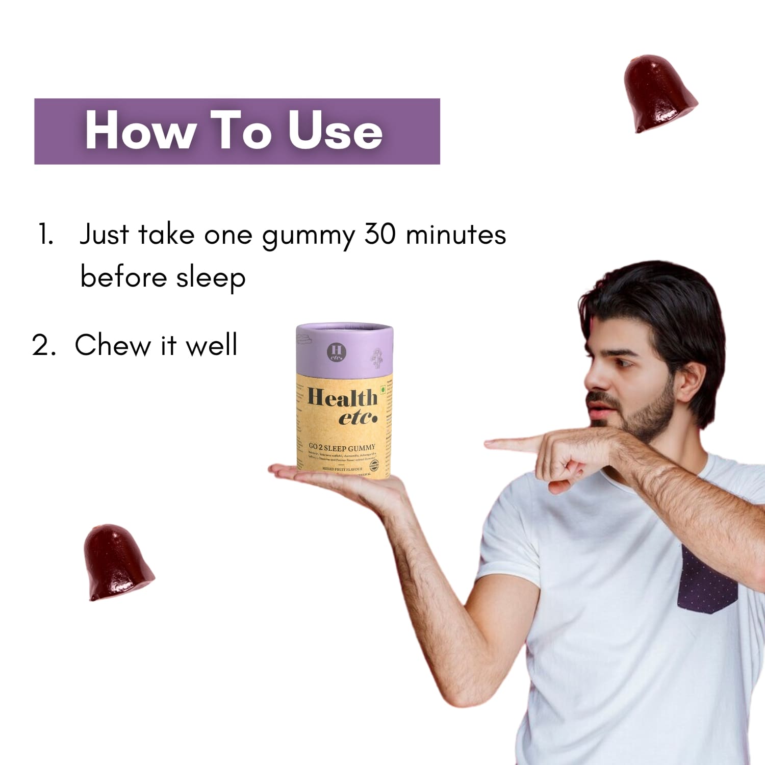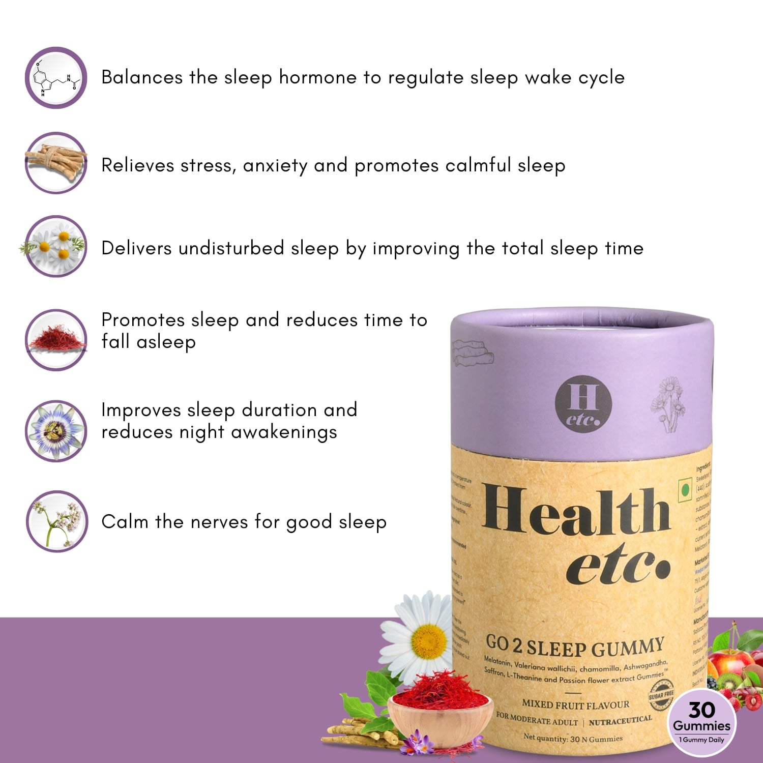 Natural sleep gummy with melatonin and carefully selected ingredients by an expert team of doctors, this Health etc.Go 2 Sleep Gummy provides a comforting bedtime ritual for a truly satisfying night’s rest. Melatonin Sleep Gummies are formulated to promote better sleep quality and help you wake up feeling refreshed. Give sugar-free sleep gummies a try and experience the difference for yourself.